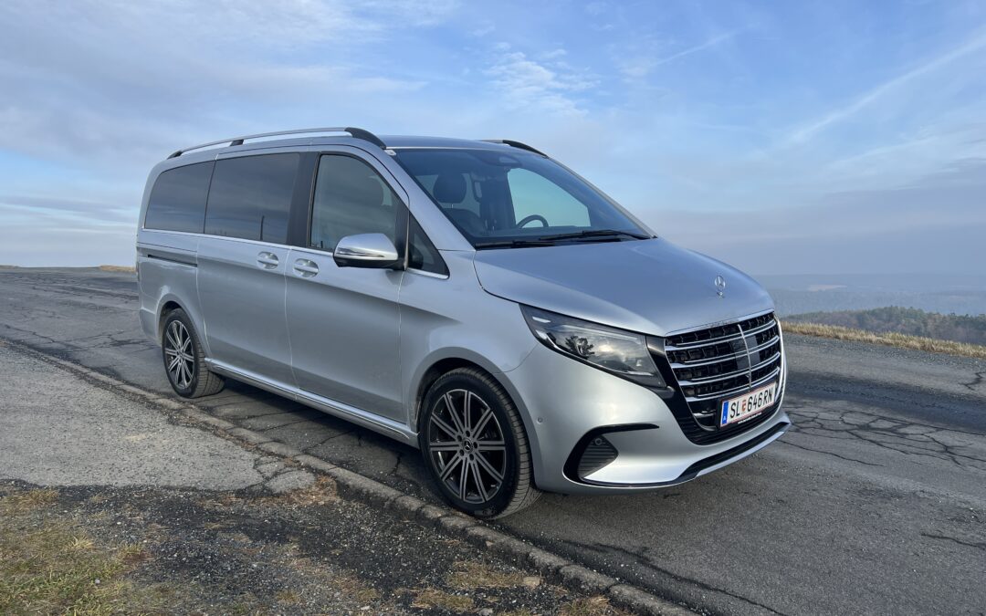 IMG 3388Seit zehn Jahren ist die derzeit aktuelle Generation des Mercedes -„Busses“ am Markt und er erfuhr etwa 2019 eine umfassende Modellpflege und wurde dazu noch elektrifiziert. Bevor nun 2026 der Nachfolger erscheint, gab es jetzt noch ein zweites Facelift. Neu gestaltet wurden der Grill, die Scheinwerfer und Schürzen, bei der  Top-Ausstattung „Exclusive“ prangt dazu erstmals bei der V-Klasse der klassische Mercedes-Stern als Kühlerfigur auf der Motorhaube. Auch innen wurde einiges geändert, das aktuelle Widescreen-Cockpit mit den zwei 12,3 Zoll-Schirmen gibt es nun auch hier. Damit ist nun auch die V Klasse mit aktueller Konnektivität gesegnet, inklusive Sprachsteuerung, induktivem Handyladen und einem aufwendigem Navi.