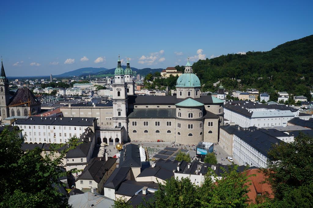 Von außen ist Salzburger Dom im Vergleich zum Wiener Stephansdom sehr unscheinbar. Dafür ist er innen umso spektakulärer. Die Geschichte des 774 vollendeten Doms ist wahrlich imposant. Unter anderem wurde im Dom Mozart getauft. Interessant ist auch, dass der Baumeister des Doms angeblich Selbstmord beging, weil die Kuppel nicht symmetrisch war und man ihm das nach dem Bau vorgeworfen hatte. Diese Geschichte wird zumindest von den Salzburgern erzählt. Aufgrund seiner Geschichte und dem beeindruckenden Innenleben ist es kein Wunder, dass der Dom zum UNESCO Welterbe zählt.